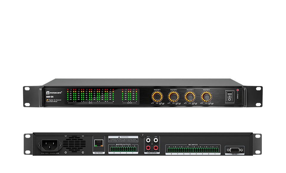 48V phantom power supply is attached to the input channel; 4-channel linear input; Independent mute control and phantom power control; Priority selection and pressure limit adjustment can be set for each channel.