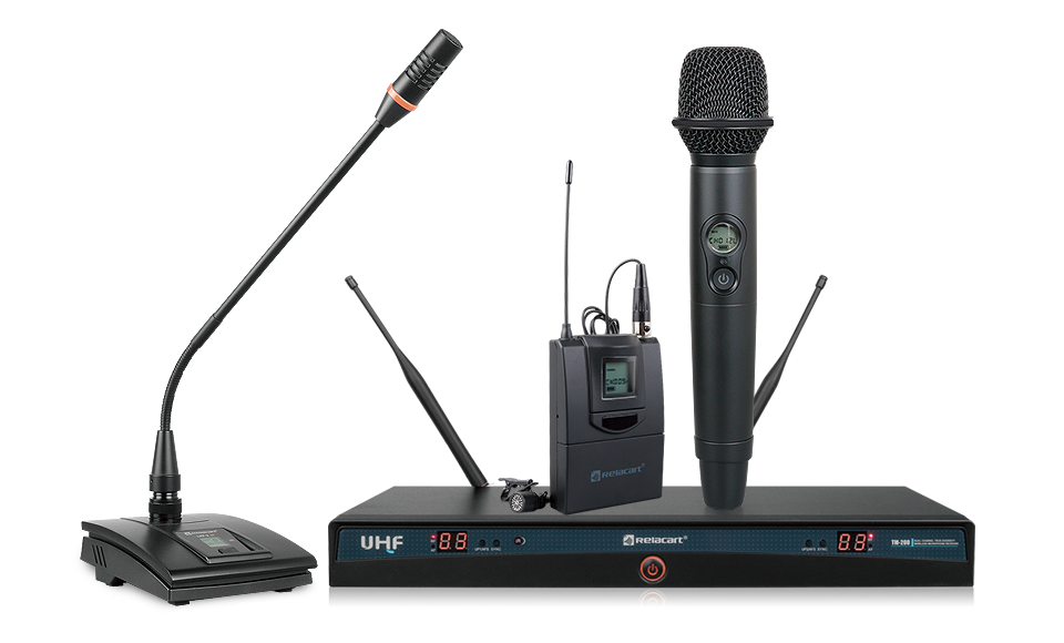 TM-200 is a true diversity wireless receiver independently developed by Relacart; handheld microphones, bodypack lavalier microphones or headset microphones, and desktop gooseneck conference microphones can be optionally selected; Automatic shutdown function. (When the microphone is placed horizontally or at an angle of less than 45 degrees, the microphone is automatically muted for 5 seconds, the microphone is automatically turned off when it is stationary for 10 minutes, and the microphone is automatically muted when it is dropped from a height. Provide users with intelligent power-saving and user-friendly applications.