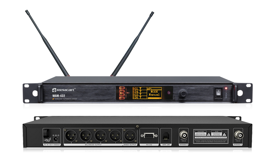 WAM-432 automatic intelligent wireless mixer is a new generation of products designed with high-performance microcomputer processor as the core of Relacart strong research and development strength. The design is professional and novel, and the digital control technology and advanced audio processing technology. The perfect combination of processing technology and network technology, intelligent control, fully automatic work; connecting AMC-20 audio and video control system can realize audio and video management functions. Apply to high-demand multi-purpose demonstration halls, small and medium-sized performances, hotels, boardroom, government departments, courts, etc.